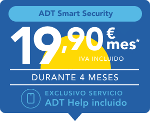 *19,90€ con iva incluido durante los 4 primeros meses sobre el precio tarifa del paquete elegido. Después desde 42,35€/mes IVA incluido. Instalación y alta gratis en paquetes ADT para hogar. Servicio ADT help incluido de acuerdo con las condiciones contractuales del contrato.